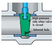 - 压力释放孔穿过阀体或楔块/阀瓣的“压力侧”钻入阀门的中心腔,从而释放压力