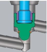 - 压力平衡管,从中心腔到阀门的“压力侧”孔钻孔并攻丝(图 10)。当包括旁通阀时,可以保持双向密封。请记住,当旁通阀关闭时,中心腔压力不会释放。